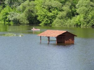 Przepływamy obok wsi Popielżyn Górny. Przed nami próg kamienisty, który można przepłynąć w miejscu, gdzie nurt jest najsilniejszy.
