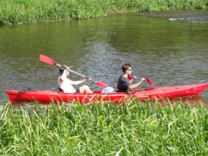 Kajaki wodujemy przy barze i wypożyczalni kajaków EL-DAW. Przed nami dosyć długi odcinek, więc warto na drogę zabrać coś do jedzenia i dużo picia.